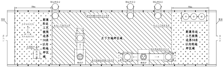 圖4-3 距離吊運(yùn)工藝極限邊界50米以內(nèi)的地坪區(qū)域示意圖